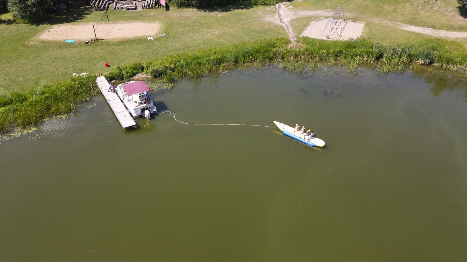 This summer camp activity is a fun way for campers to get out on the lake and experience a thrill! Half of the cabin sits on the pontoon boat while the other half shares the banana tube, then they switch.